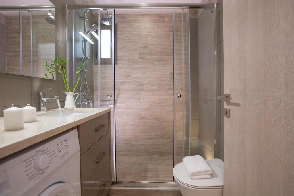 Apartment 1, located on the first floor, is approximately 80m2 in size and can accommodate 4-6 people. It has a living room with a sofa bed, dining room and kitchen, 2 bedrooms and 2 bathrooms. All the bedrooms and the living room have a balcony with a view of the sea.