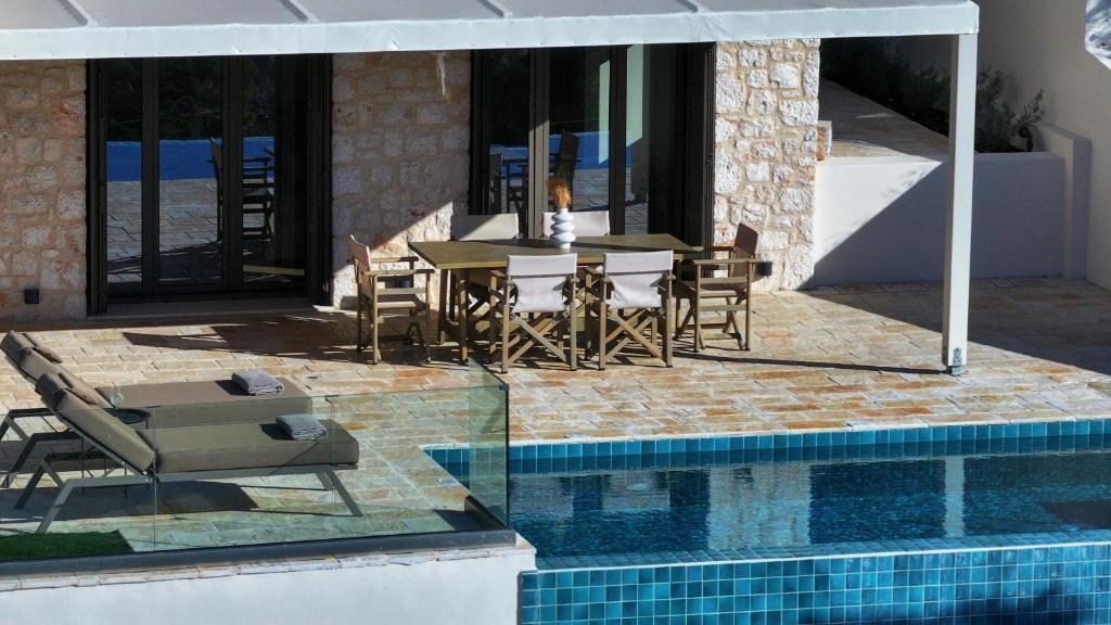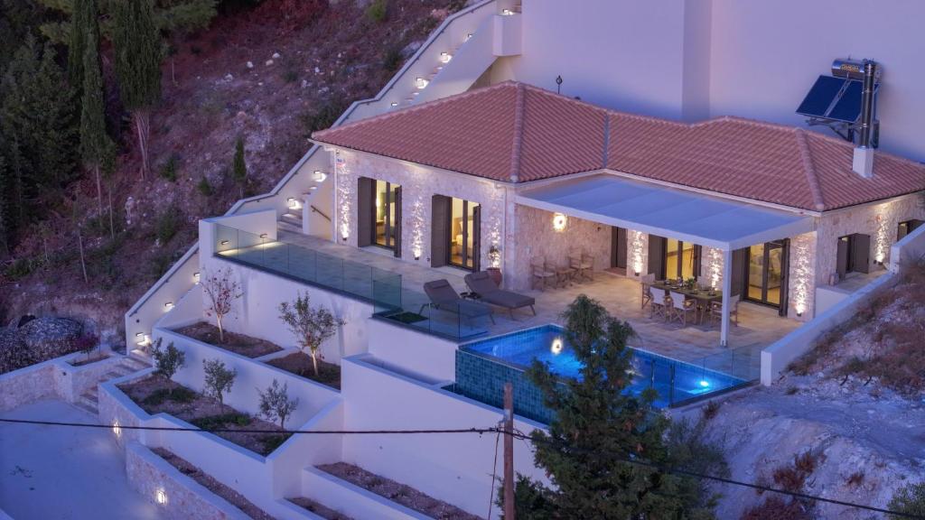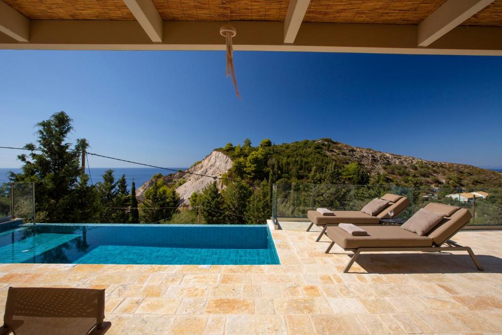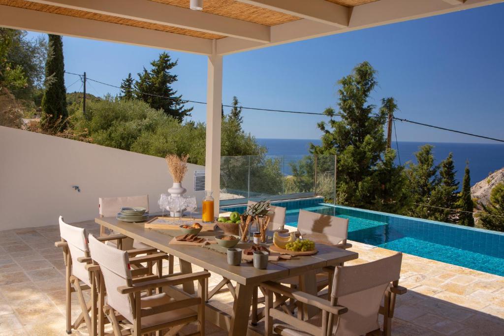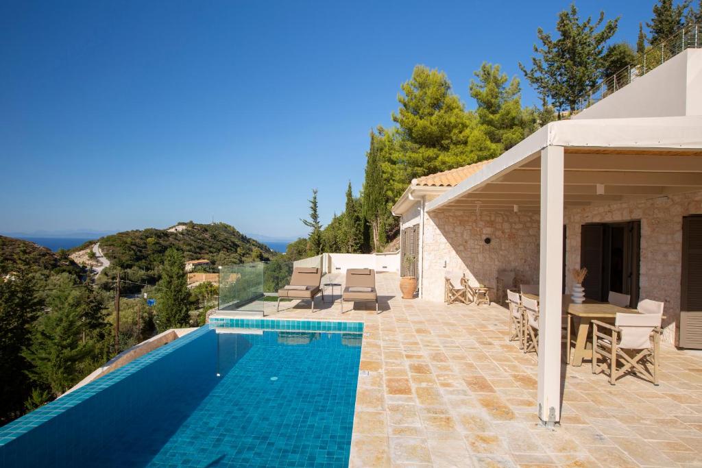 This charming villa with private infinity swimming pool perched in a quite location on the hillside of Kathisma beach, offering spectacular panoramic views of the Ionian sea, sunset and evergreen mountainous terrain of the valley below.